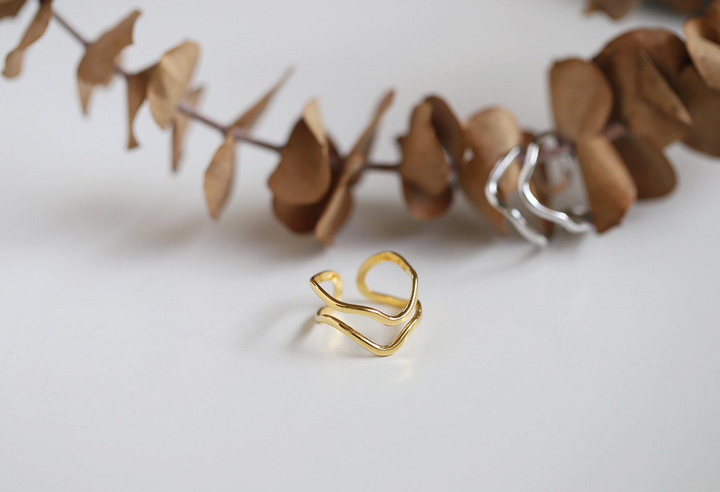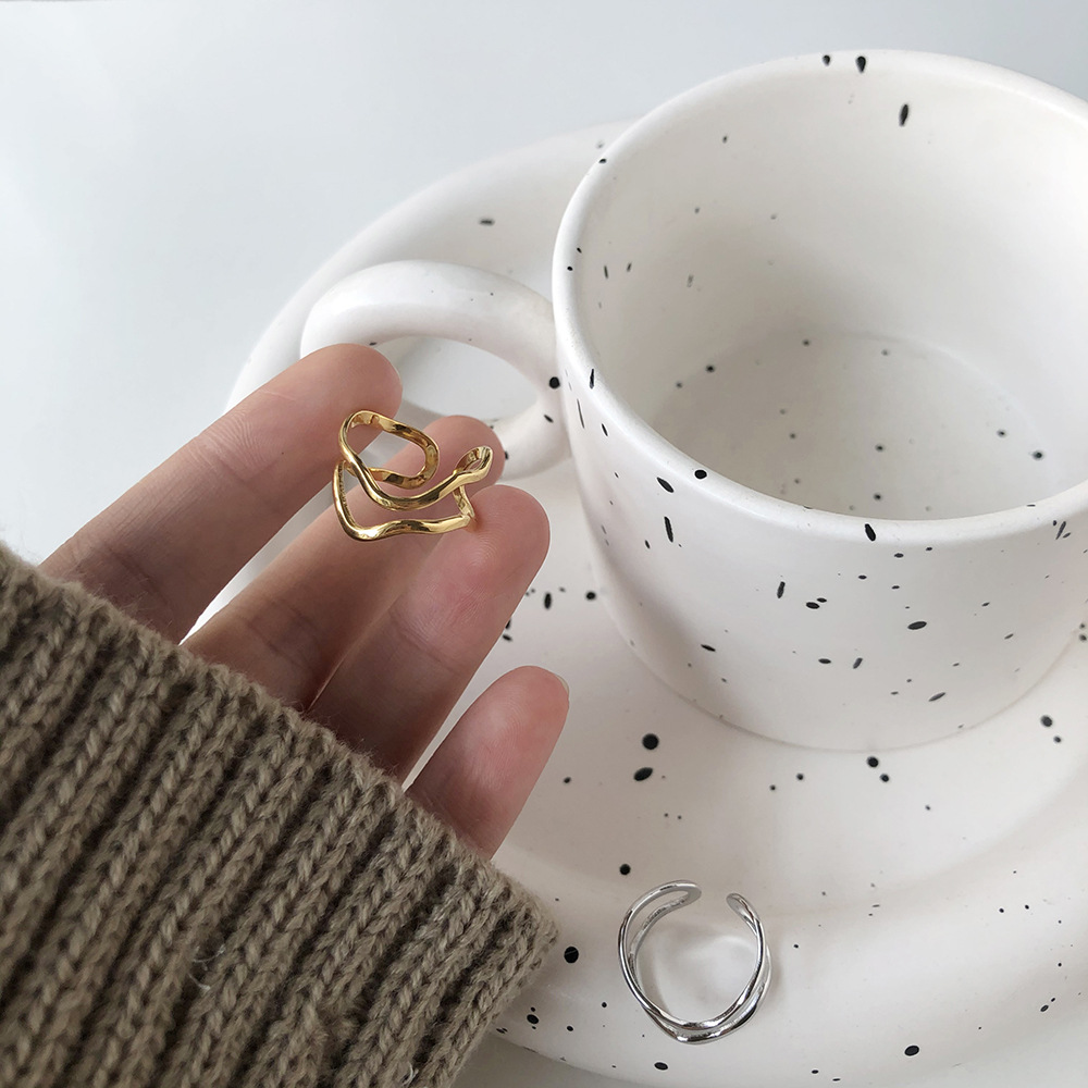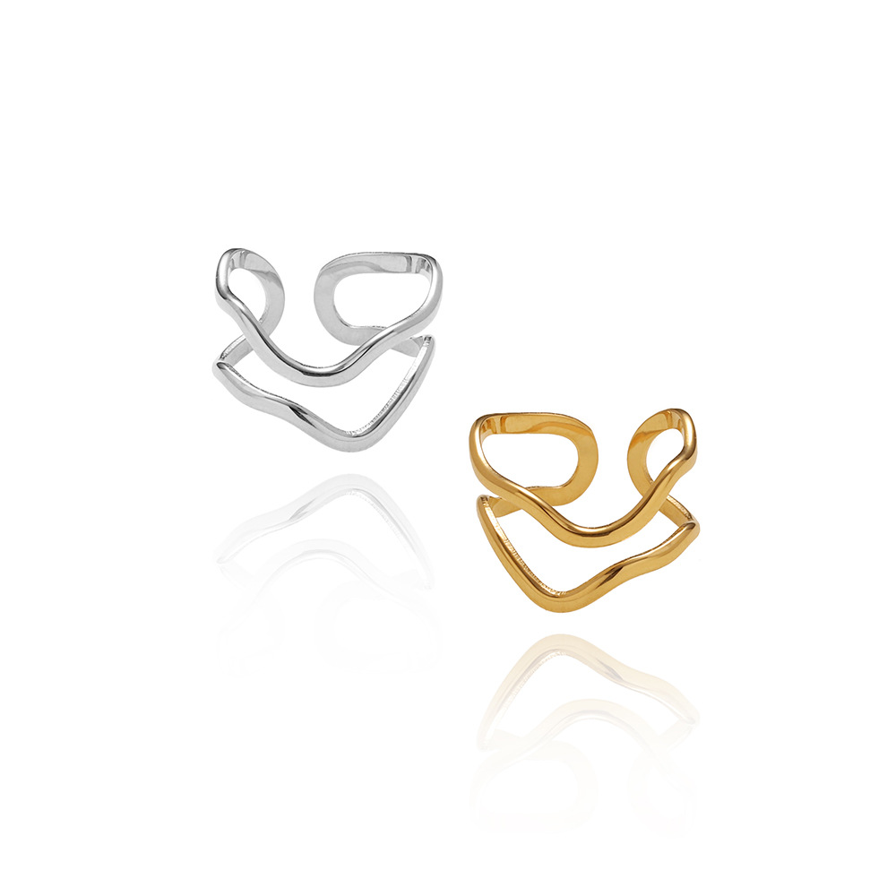 18K Gold-Plated Wave Ring with Geometric Design (Single)