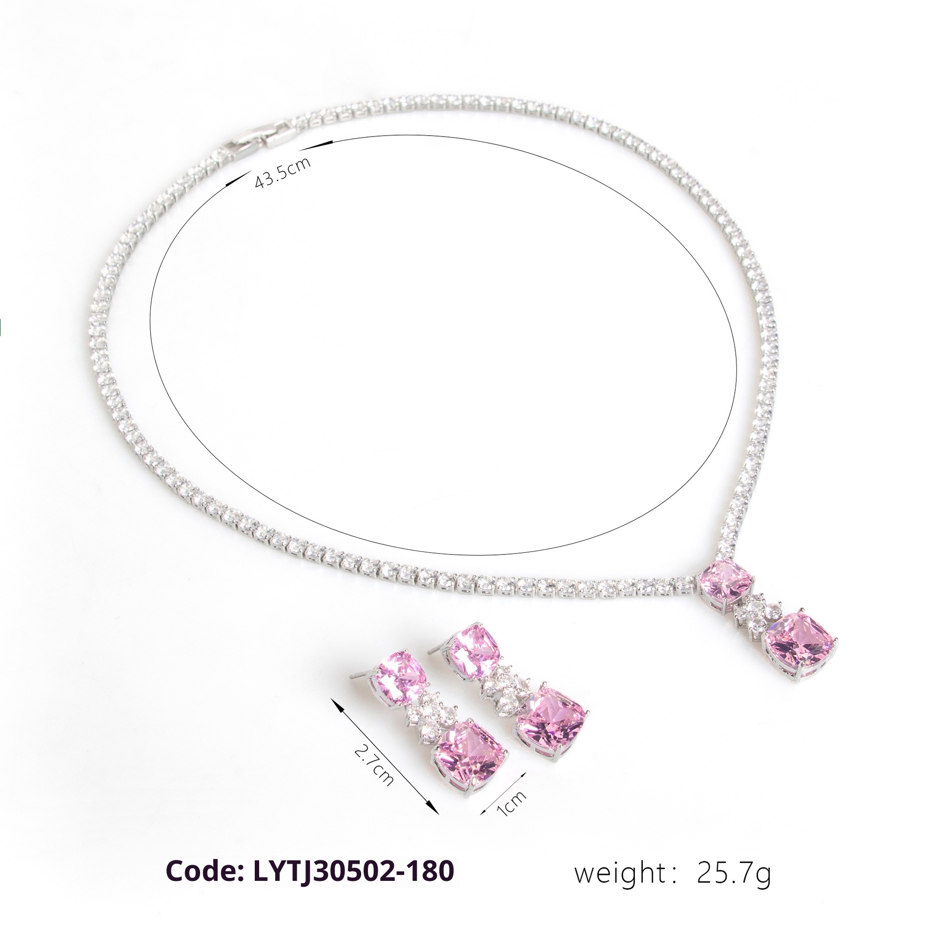 Small Square Bride Collarbone Chain Design Simple Zircon Pendant Earrings